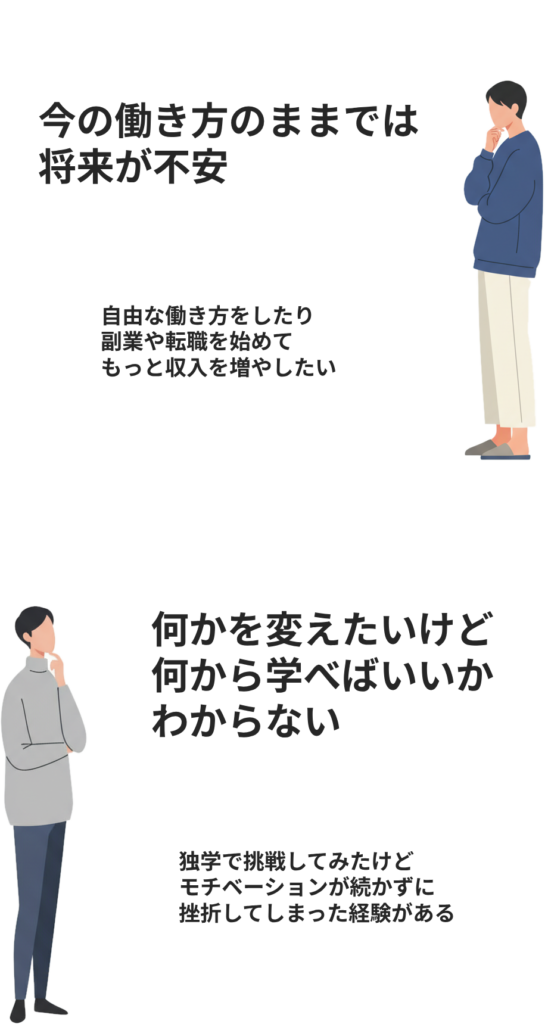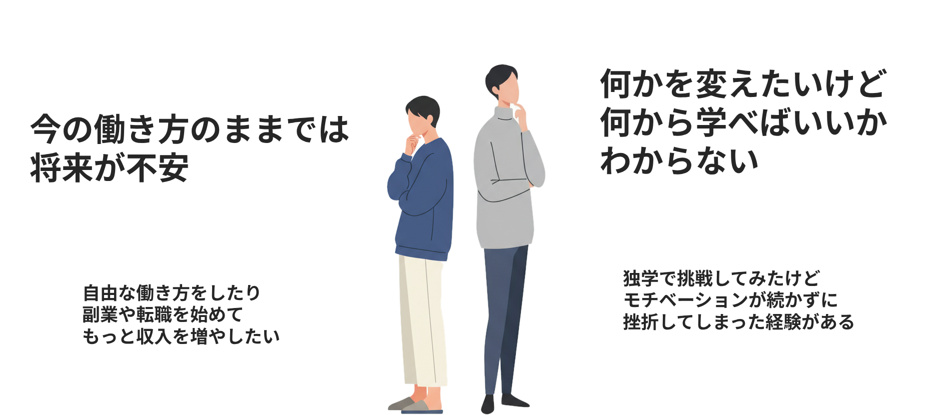 | 他のスクールは高額でちょっと | 実用的なスキルが身につくのか不安 |