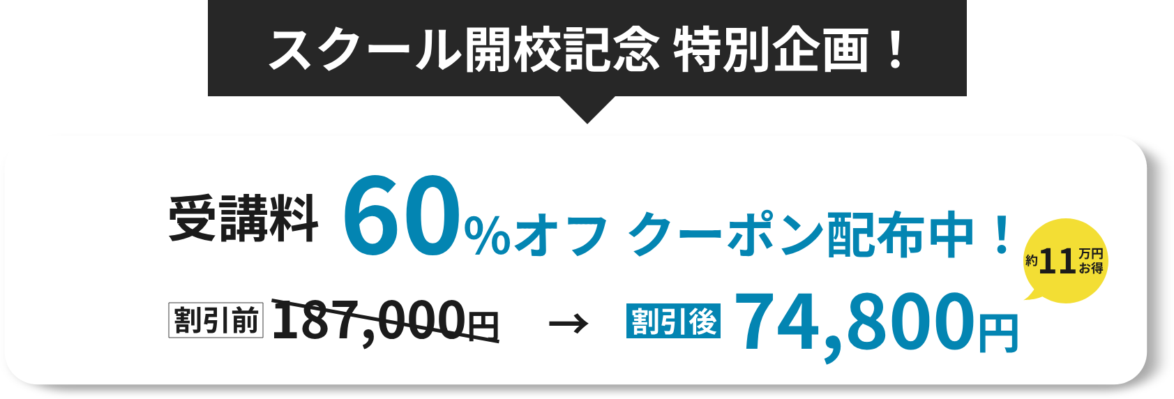 これだけ充実した学習コンテンツと、マンツーマンの個別指導で学びやすい環境にも関わらず、多くの方の手に届きやすい価格設定としています。